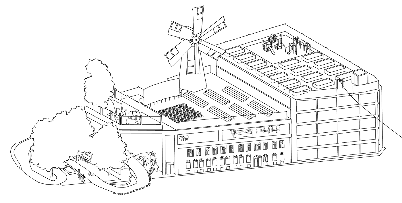 Un dessin de la friche, situé entre la rue du cheval noir et le quai du Hainaut. Fait sur le Quai du Hainaut de Hugo Lampaert.