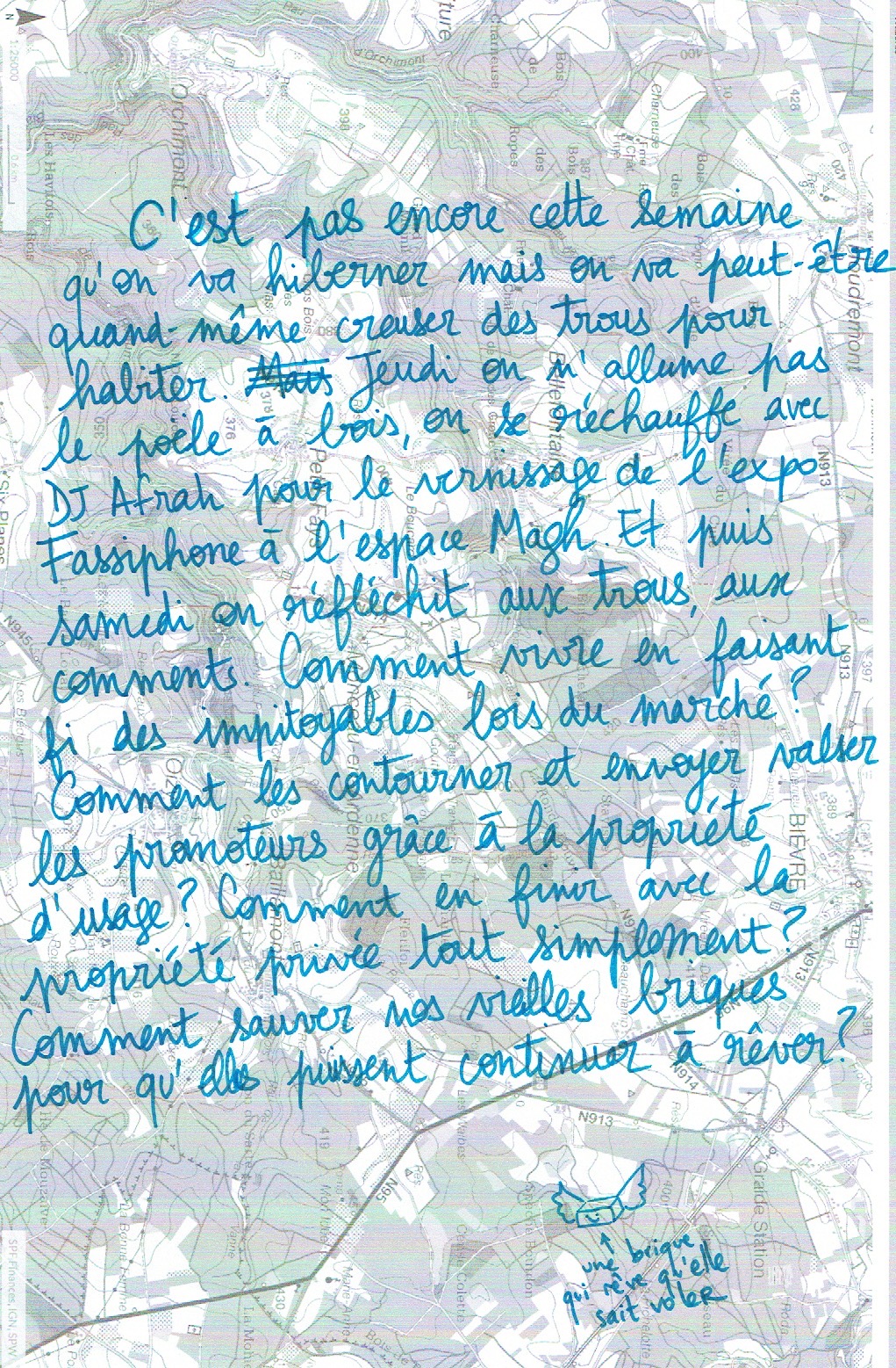 La ville tangue. Entre les murs et les pierres, quelque chose pousse. Des graines, semées par celles et ceux qui refusent de s’effacer. Dans le sol, le quai s’agite de plus en plus, les immeubles vacillent. Je me penche au-dessus du canal et j’aperçois un germe fendant enfin la surface de l’eau.